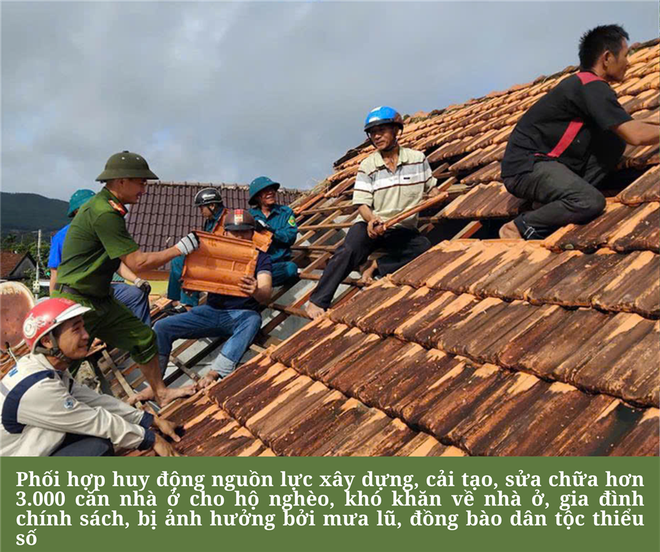Với việc tiên phong thực hiện chính sách an sinh xã hội, phối hợp huy động nguồn lực xây dựng, cải tạo, sửa chữa hơn 3.000 căn nhà ở cho hộ nghèo, khó khăn về nhà ở, gia đình chính sách, bị ảnh hưởng bởi mưa lũ, đồng bào dân tộc thiểu số, không chỉ giúp người dân an cư, an tâm lao động sản xuất, phát triển kinh tế, tích cực tham gia bảo vệ an ninh, trật tự từ cơ sở, mà còn củng cố thế trận lòng dân trên cơ sở thế trận an ninh nhân dân, nền an ninh nhân dân gắn với thế trận quốc phòng toàn dân, nền quốc phòng toàn dân vững chắc.