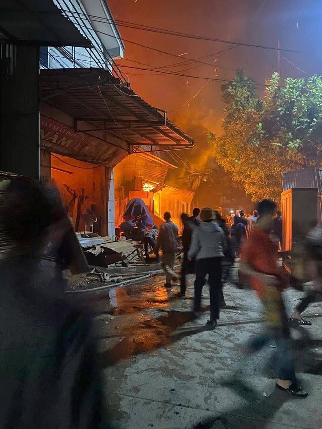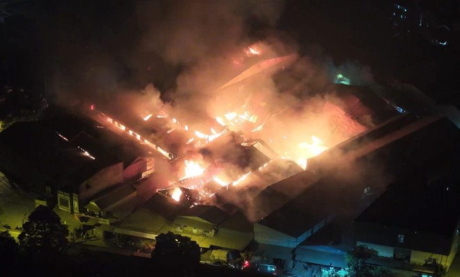 Do là cơ sở sản xuất liền kề với nhau nên đám cháy lớn đã gây ra cháy lan nhiều nhà bên cạnh. Theo lực lượng chức năng hiện tại không có người mắc kẹt.