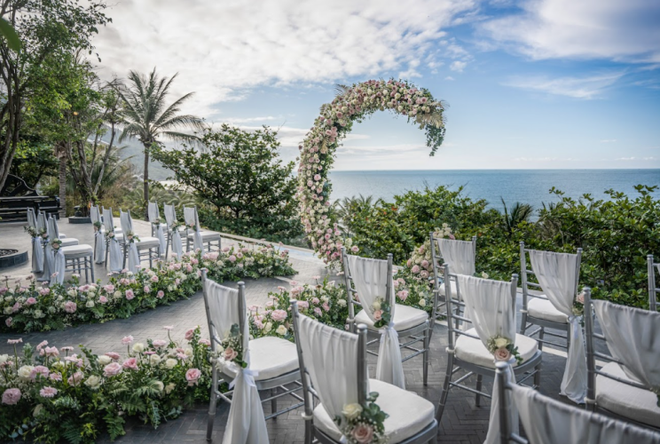 Một địa điểm cưới đắt giá khác của khu nghỉ dưỡng - nhà hàng La Maison 1888, nơi được thiết kế như một biệt thự Pháp cổ kết hợp giữa lối kiến trúc Đông Đương cùng điểm nhấn độc đáo mang đậm phong cách cá nhân của “ông hoàng thiết kế resort” Bill Bensley cùng tầm nhìn tuyệt diệu ra thiên nhiên Sơn Trà.