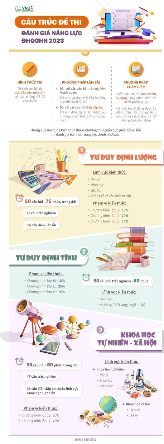 Cụ thể cấu trúc đề thi ĐGNL năm nay của ĐHQG Hà Nội như sau:
