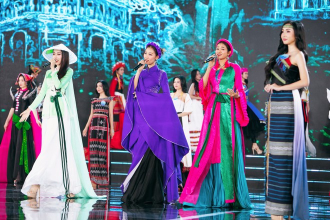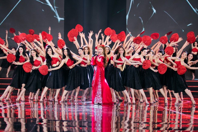 Sân khấu đêm chung kết lấy hình ảnh hoa sen làm chủ đạo. Thiết kế sân khấu, hình ảnh, visual tạo thành bức tranh sống động. Hoa sen – biểu tượng của sự thanh khiết – không chỉ xuất hiện trên sân khấu mà còn lan tỏa trong toàn bộ không gian chương trình. Những cánh sen trên trên nền hiệu ứng 3D như lời tri ân đến vẻ đẹp thuần khiết của dân tộc Việt Nam.