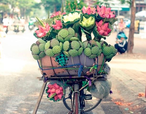 Thời điểm Hà Nội rộ sen từ các vùng ven đô đổ về, mới tờ mờ sáng khi vừng đông vừa hé đường chân trời, hoa sen từng bó lớn, bó nhỏ được chuyên chở bằng quang gánh, xe đạp, xe máy đổ về các chợ đầu mối rồi tỏa đi khắp phố phường. Đi trên đường ta dễ bắt gặp những chiếc xe đạp cũ kỹ đằng sau đèo một rổ hoa sen xếp từng bó gọn gàng.