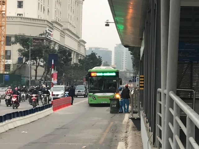 - Lắp dải phân cách cứng tại một số điểm nhà chờ buýt nhanh BRT