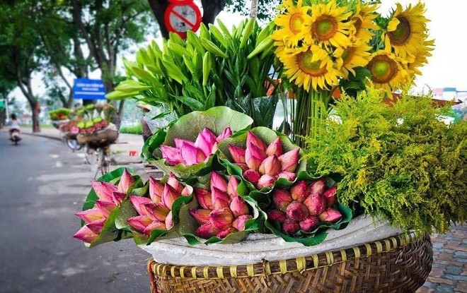 Vẫn như ngày xưa, những người bán hoa luôn dậy từ sớm. Họ đạp xe vào phố, tới những địa điểm cụ thể thì dừng lại. Những người mua quen khi đi ngang qua cũng dừng xe để chọn cho mình một bó hoa đầu mùa. Bây giờ bắt đầu vào mùa sen, những bông sen như búp tay chúm chím nhìn yêu vô cùng. Hoa sen dường như làm con phố vốn ồn ào chợt dịu đi, chợt đâu đây ngan ngát mùi hương mộc mạc mà thanh khiết.