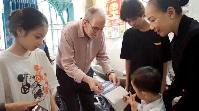 Ông David Riddle - Tổng Giám đốc Tập đoàn Tân Hiệp Phát tặng quà cho một gia đình tại Quận 3, TP.HCM |