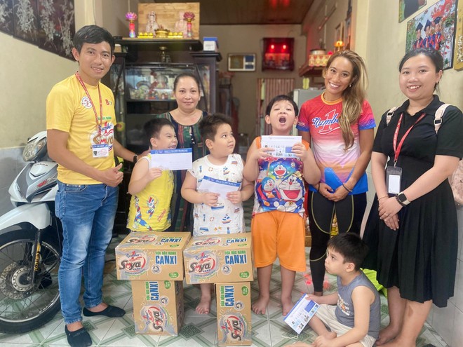 Đại sứ thương hiệu Number 1 Vũ Phương Thanh cùng cán bộ, công nhân viên Tập đoàn Tân Hiệp Phát đến thăm hỏi và tặng quà cho từng gia đình em nhỏ mồ côi được Tập đoàn nhận bảo trợ |